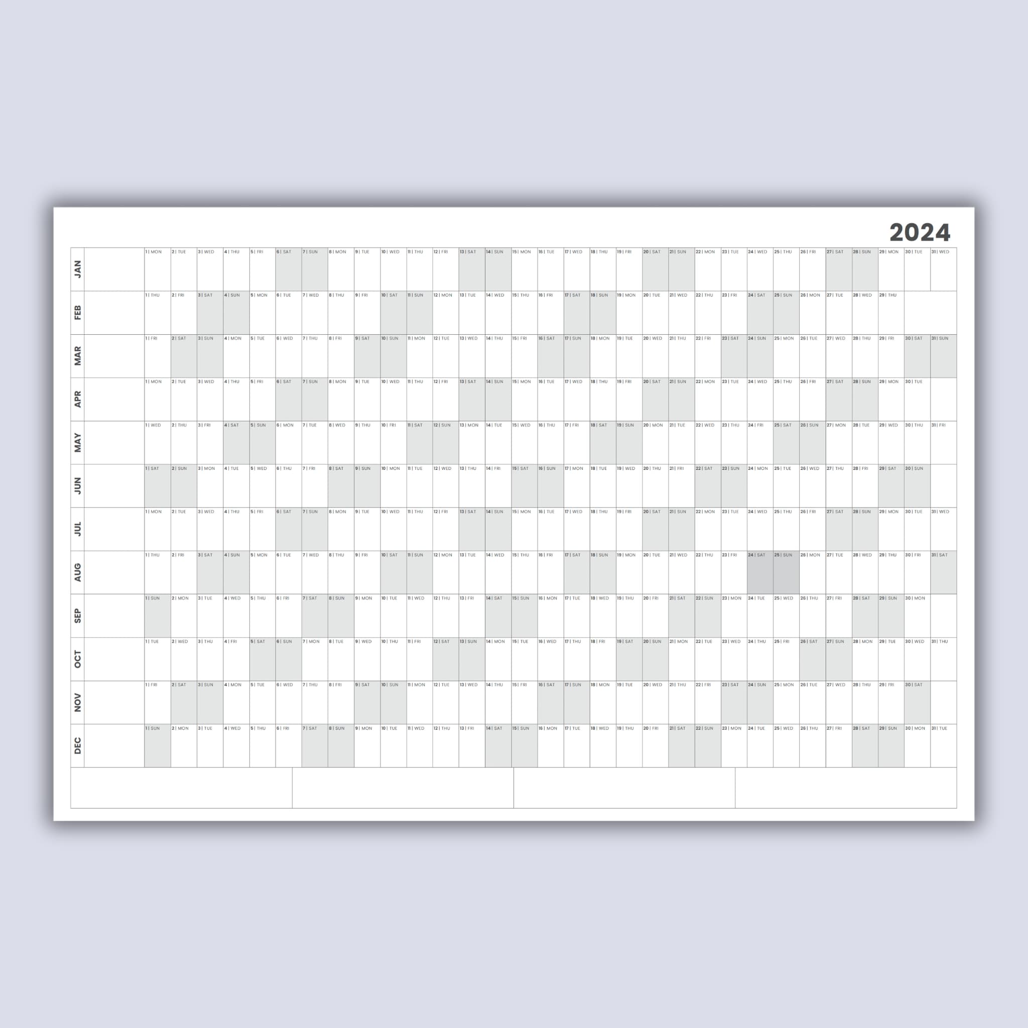 2024 Year Planner. Wall Horizontal Yearly Printable Annual